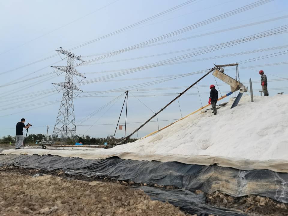 九月的鹽場(chǎng),鹽田銀光閃閃,高壓電線凌空飛架,水泵房池星羅棋布,制鹽機(jī)械轉(zhuǎn)動(dòng)轟鳴,一座座白花花、明晃晃的鹽廩,遠(yuǎn)看有如干凈、潔白的雪山,景象十分美麗。9月27日,連云港日?qǐng)?bào)社新媒體中心采訪組一行,來到臺(tái)北海州灣公司制鹽現(xiàn)場(chǎng),進(jìn)行“奮斗十年,難忘一刻”喜迎二十大專題欄目的拍攝,投資公司黨委書記、董事長(zhǎng)、總經(jīng)理王德志陪同。