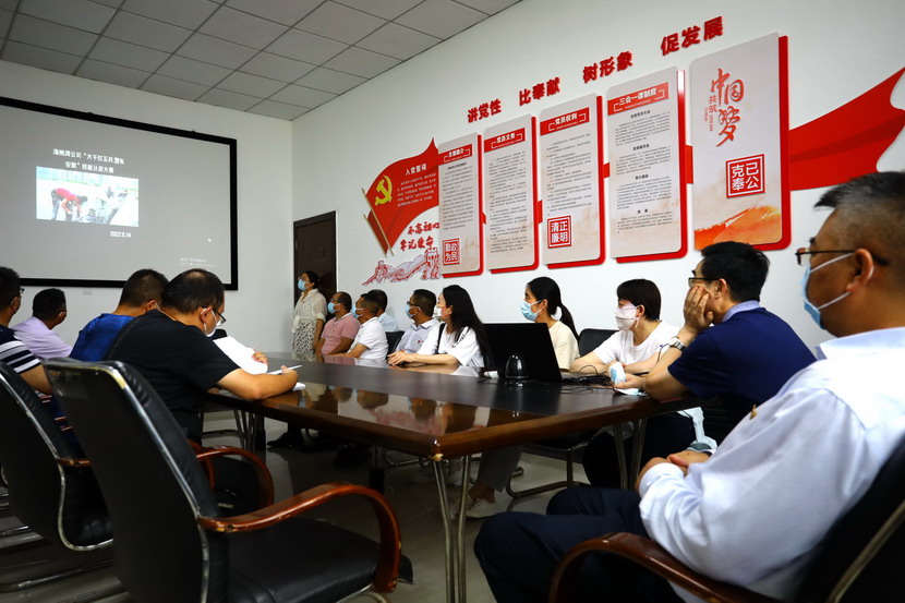 與會(huì)人員邊看邊聽講解海州灣黨支部規(guī)范化展板和本月書記項(xiàng)目的落實(shí)情況,以及在海州灣黨建活動(dòng)室觀摩學(xué)習(xí)了上半年黨建基礎(chǔ)臺(tái)賬和活動(dòng)影像。各黨支部就基層黨組織規(guī)范化及書記項(xiàng)目“點(diǎn)將臺(tái)”的落實(shí)情況作了匯報(bào)交流。黨委副書記楊善革針對(duì)各支部的黨建工作情況作了詳細(xì)的點(diǎn)評(píng),指出各支部黨建工作中存在的不足,并要求各支部立即整改。