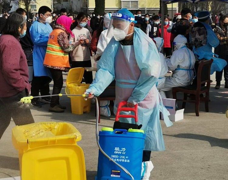 霍正鋼,志愿者隊(duì)伍的一員,也是這支志愿服務(wù)隊(duì)伍中的中堅(jiān)力量。他,心中有大愛,在海州灣黨支部3月7日發(fā)出“馳援社區(qū),共同抗疫”動(dòng)員令后,他第一個(gè)站出來:“疫情就是命令,防控就是責(zé)任。身為黨員,我理應(yīng)模范帶頭,支持新冠肺炎疫情防控工作?!彼粌H是這樣說的,更是這樣做的,在昌圩社區(qū)每一次的核酸檢測中,他專挑“急、難、險(xiǎn)、重”的活。比如消殺工作,這是一個(gè)體力活,需要背著足足有20公斤重的消毒液,來回不停的走動(dòng),不斷的添加消毒液。有幾次,核酸檢測從早上8點(diǎn)一直持續(xù)到晚上8點(diǎn),足足12個(gè)小時(shí),而消殺工作的時(shí)長都達(dá)到14個(gè)小時(shí),不僅是檢測過程中,開始前和結(jié)束后的一小時(shí)都要消殺到位。14個(gè)小時(shí)下來,霍正鋼同志穿著密不透風(fēng)的防護(hù)服,里面的衣服濕了又干,干了又濕······。當(dāng)大家看到他口唇干裂的都掉了皮,問他:“你是沒有喝水嗎?”“不能喝水,忍著吧,喝水就得上側(cè)所,耽誤時(shí)間,這波病毒隱匿性強(qiáng),傳播速度快,不能有一絲懈怠?!彼┖竦恼f著。