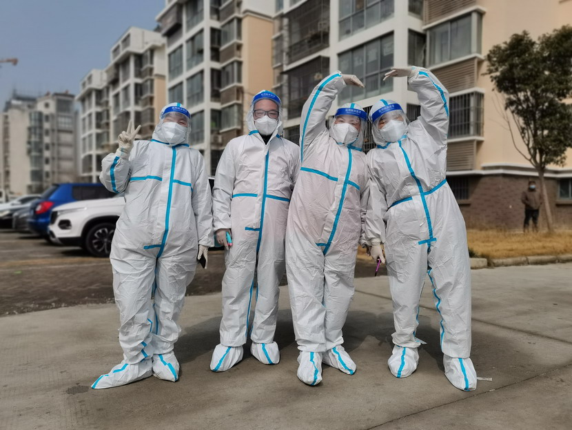 清晨6點(diǎn)30分,1號(hào)檢測(cè)點(diǎn),李明同志在檢查物資,“大白”服裝4套、“小藍(lán)”服裝6套、棉簽600根……;2號(hào)檢測(cè)點(diǎn),于洪亮在將物資上桌,病毒核酸檢測(cè)試管、棉簽、消毒液,“還缺少一瓶酒精,我立即反饋給社區(qū),請(qǐng)社區(qū)抓緊安排送來(lái)”;4號(hào)檢測(cè)點(diǎn),蘇玲、秦黎明正在互相幫忙穿好防護(hù)服,“秦姐,這個(gè)防護(hù)面罩里外有兩層薄膜,我給你撕掉,這樣就不會(huì)有霧氣了”,“嗯嗯,你這個(gè)拉鏈得拉到頂,我們自己也一定要做好防護(hù)”秦黎明溫柔的說(shuō);5號(hào)檢測(cè)點(diǎn),內(nèi)退黨員孫芳和姜海洋,互相在防護(hù)服后背寫(xiě)上對(duì)方的名字,以便于更高效的完成檢測(cè)工作;6號(hào)檢測(cè)點(diǎn),霍正鋼、朱文健、韓永剛、邱榮濱正在清點(diǎn)檢測(cè)小卡片;7號(hào)檢測(cè)點(diǎn),張強(qiáng)在拿著酒精給廢物處置垃圾箱消毒;8號(hào)檢測(cè)點(diǎn),新加入的孫銀、占恒春、尹永明、韓永光、趙紹慶正在給消殺噴霧劑灌裝84消毒液,社區(qū)8個(gè)檢測(cè)點(diǎn)的消殺工作全部由昌圩臨時(shí)黨支部志愿者負(fù)責(zé)。