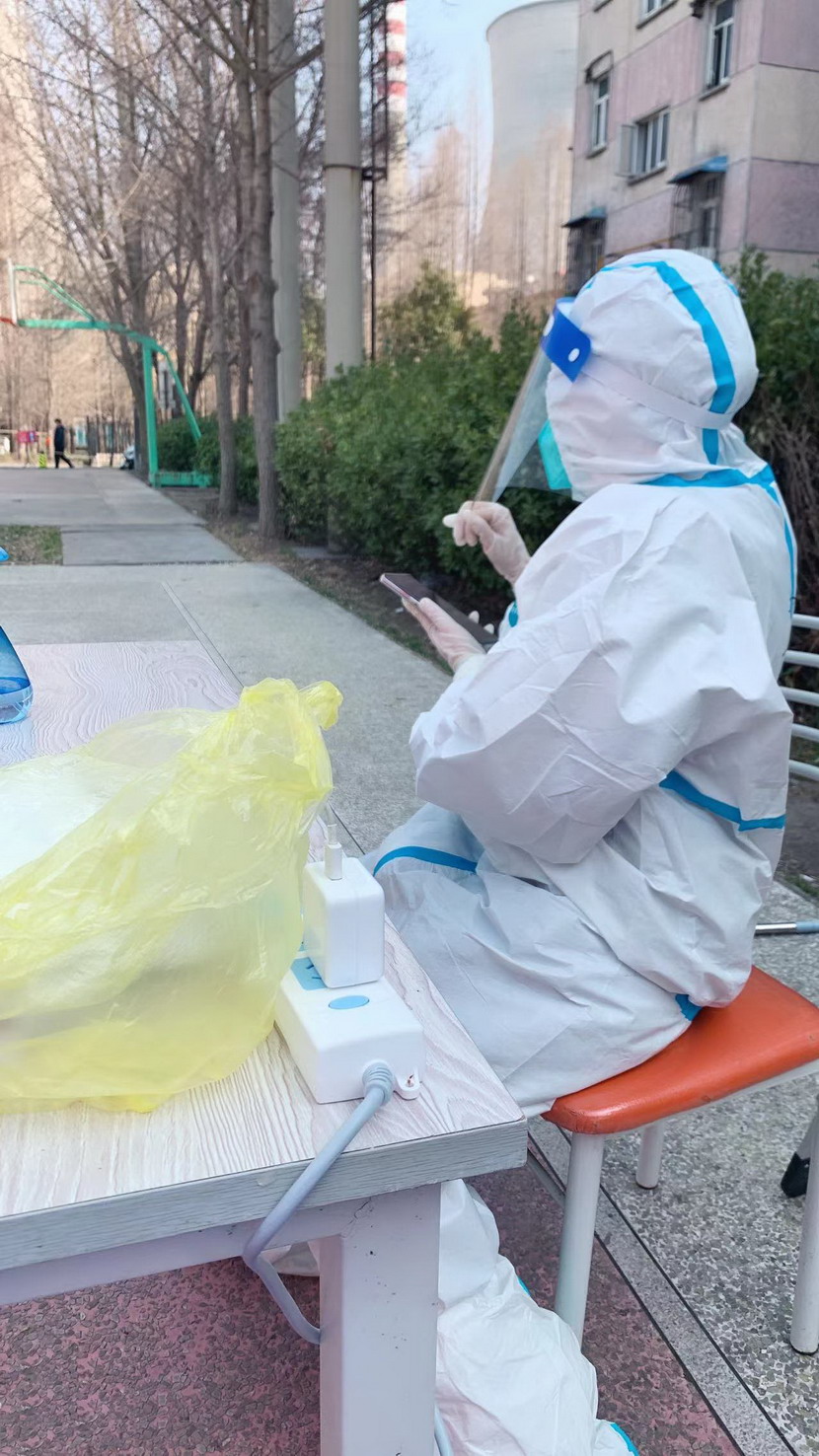 3月8日,臨時黨支部成立,黨員志愿者們隨即奔赴社區(qū)核酸檢測現(xiàn)場。當天,志愿者們穿上防護服。“你好,請戴好口罩,出示健康碼?!薄澳愫?,這邊人比較少,請往這邊走,保持一米距離?!本S持現(xiàn)場秩序、檢查健康碼、登記核酸個人信息……志愿者們堅守在各自責任區(qū),細心、耐心回答居民們的各類問題,忙得連喝水的時間都沒有。細致周到的服務(wù)、無私的奉獻精神,得到了社區(qū)居民們的一致認可和贊揚。