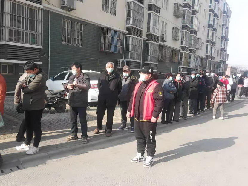 ? ? ?▲翔立分公司黨支部副書記姜海洋引導(dǎo)群眾核酸檢測