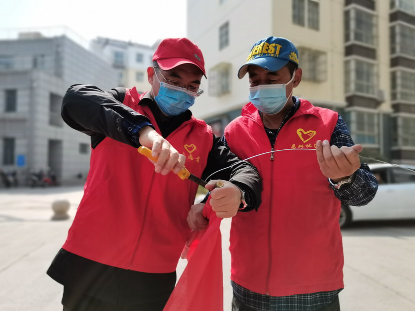 ? ? ? ? 當(dāng)日下午,志愿者們又接到新的工作任務(wù),要為社區(qū)近千戶居民辦理臨時(shí)出入證,這不是一項(xiàng)難度很大很復(fù)雜的工作,但是由于通知突然,很多居民宅在家里并不知情,需要志愿者們手持小喇叭,在各棟樓各單元宣傳廣播。要確保每戶居民清晰知曉,往往一棟樓要徒步往返多次,這對志愿者們的體力和肺活量是不小的挑戰(zhàn),幾個(gè)小時(shí)下來,志愿者們大汗淋漓,聲音都是嘶啞的。