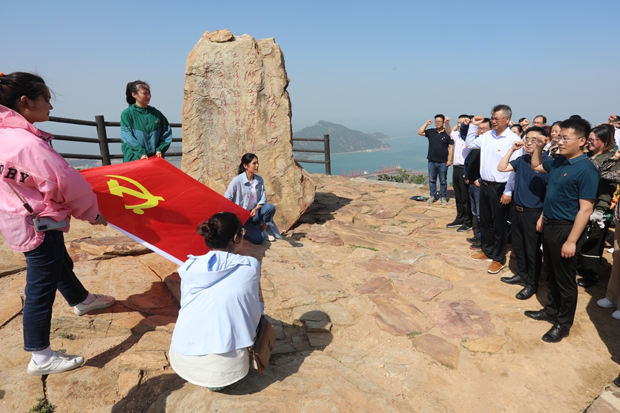 大家在桅尖口石碑前,仔細聆聽了工作人員講述了當年連云港港保衛(wèi)戰(zhàn)的“一寸山河 一寸血”。隨后在曾經(jīng)無數(shù)抗戰(zhàn)英雄拋頭顱灑熱血的地方,全體黨員重溫了入黨誓詞,向黨和英烈們許下的“謹記昔日舉國傷痛,不忘犧牲砥礪前行”的誓言。