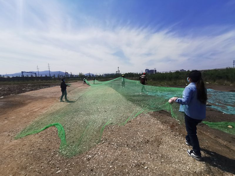 “啦啦啦,我們都是鋪網(wǎng)手,鋪網(wǎng)本領強”在海州灣車站小攤,資源分公司全體職工和公司團委組織的青年員工唱著歌,哼著曲,僅僅只用了一上午,就完成了100多畝小攤的裸露土地的防塵網(wǎng)鋪設工作,“小伙伴”們擦著汗,喝著水表示“鋪網(wǎng),我們是專業(yè)的”。