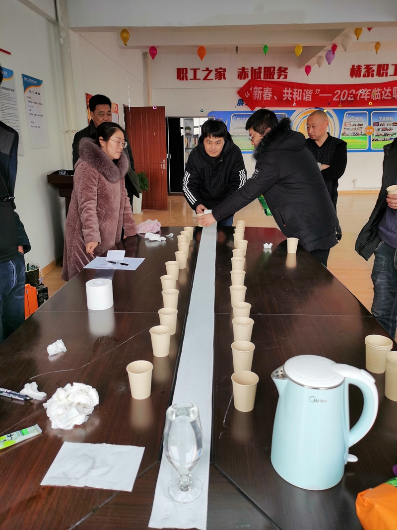 臨達(dá)公司工會(huì)組織開展了“迎新春、共和諧”職工聯(lián)誼會(huì)。本次活動(dòng)以“益智娛樂、休閑健康”為主旨,設(shè)置群龍奪水、你比我猜、卷紙大作戰(zhàn)、繞口令等四個(gè)游戲項(xiàng)目?,F(xiàn)場(chǎng)用氣球、橫幅等布置,洋溢著濃濃的節(jié)日氛圍。