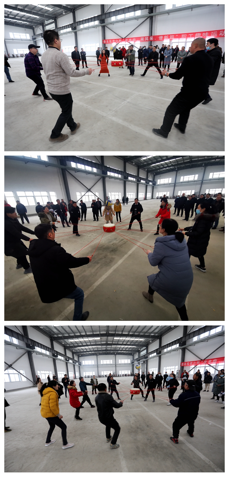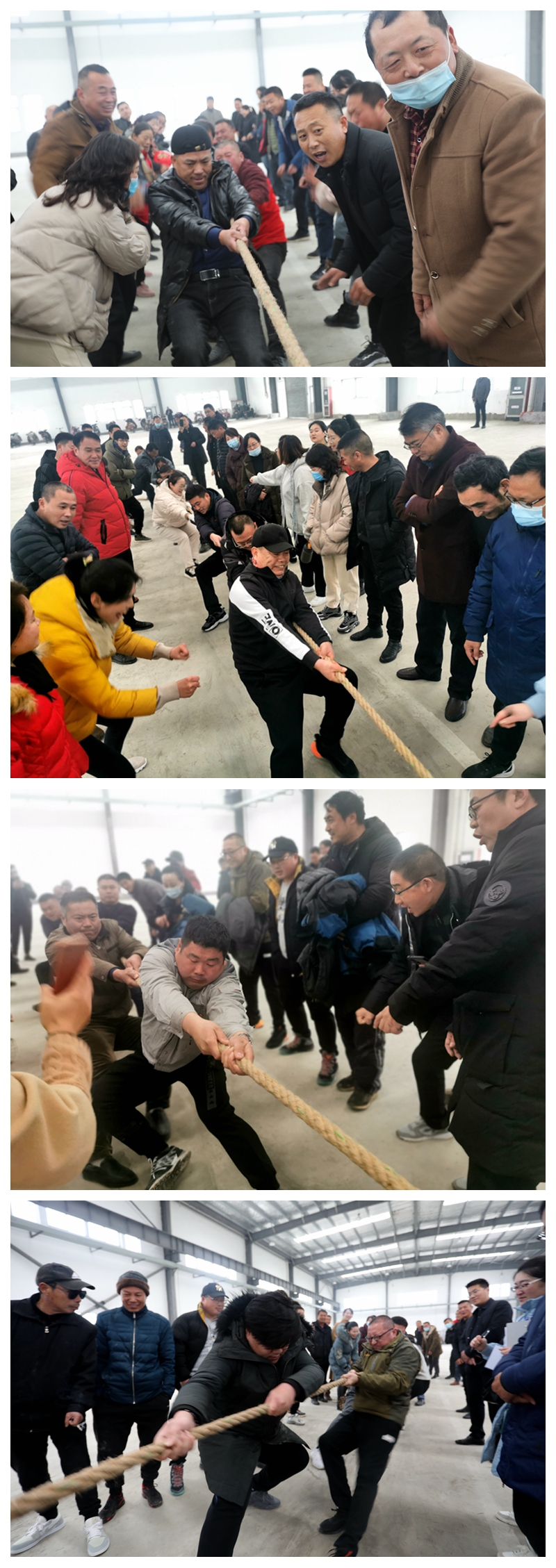 陽光熹微,冬日似金。為喜迎2021年新年的到來,大力弘揚(yáng)團(tuán)結(jié)拼搏,昂揚(yáng)向上、奮發(fā)有為的精神風(fēng)貌,營造生動活潑、寬松和諧、積極健康的良好氛圍,12月28日下午,投資公司在海州灣公司9號廠房舉辦“慶豐收、展風(fēng)采、譜新篇”迎元旦職工趣味運(yùn)動會。本次趣味運(yùn)動會分為拔河、同心擊鼓、企鵝漫步、快樂點(diǎn)球等四個項(xiàng)目,分為兩天舉行,本日舉行拔河、同心擊鼓兩項(xiàng)比賽。