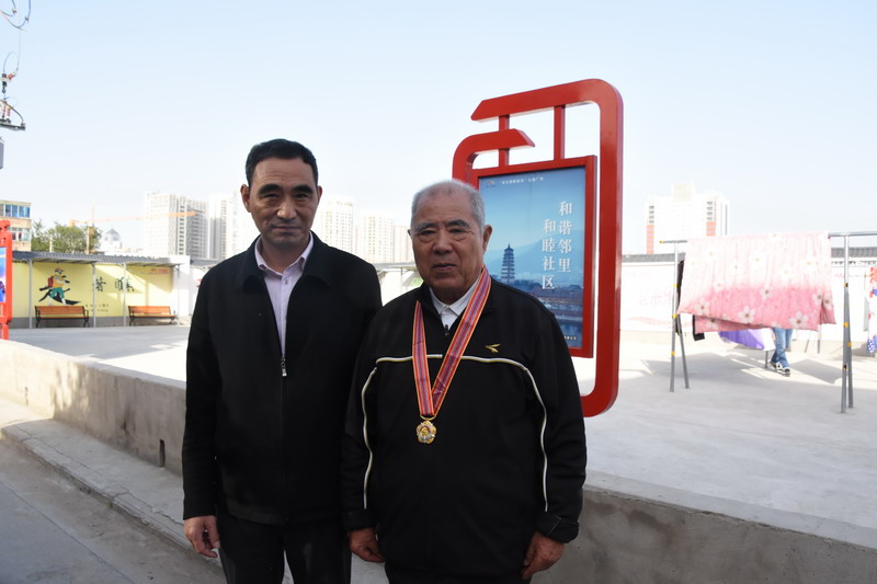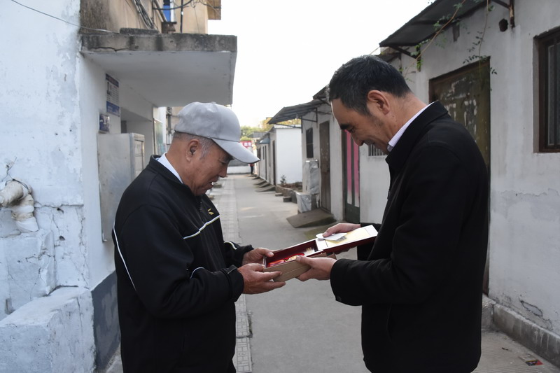 解韻波同志今年83歲,1956年1月參軍,那年19歲,同年6月經(jīng)過(guò)短期高強(qiáng)度培訓(xùn),作為無(wú)線電通訊兵出國(guó)抗美援朝。1959年西藏達(dá)賴集團(tuán)發(fā)動(dòng)叛亂,剛回國(guó)不久的解韻波作為無(wú)線電技術(shù)兵種隨即跟隨大部隊(duì)入藏平叛。至今他仍保留著抗美援朝軍功章,入藏平叛軍功章、紀(jì)念章等。1962年退伍分配至臺(tái)北鹽場(chǎng)工作,1997年退休。今天慰問(wèn)的時(shí)候,在鄰居們的簇?fù)砗推G羨之中,還沒(méi)進(jìn)家門(mén),鄰居們就迫不及待地要求打開(kāi)“紀(jì)念章”一睹風(fēng)采。紀(jì)念獎(jiǎng)?wù)聮煸诶蠎?zhàn)士胸前,一眾鄰里夸贊不斷:這份榮譽(yù)沉甸甸的。這份榮譽(yù)是拿命換來(lái)的。這是不得了的榮譽(yù)啊。這樣的老兵是我們的寶貝哦,我們要尊敬啊。……就在小區(qū)活動(dòng)廣場(chǎng)上,老戰(zhàn)士與大家暢談起保家衛(wèi)國(guó)光榮的戰(zhàn)斗經(jīng)歷,烽煙往事歷歷在目。退伍后,不褪軍人本色,幾十年如一日立足家鄉(xiāng)建設(shè),為臺(tái)北鹽場(chǎng)奉獻(xiàn)青春,為國(guó)家建設(shè)貢獻(xiàn)力量。大家對(duì)解韻波老戰(zhàn)士的革命戰(zhàn)斗和建設(shè)祖國(guó)的歷程表示由衷贊嘆和敬佩。