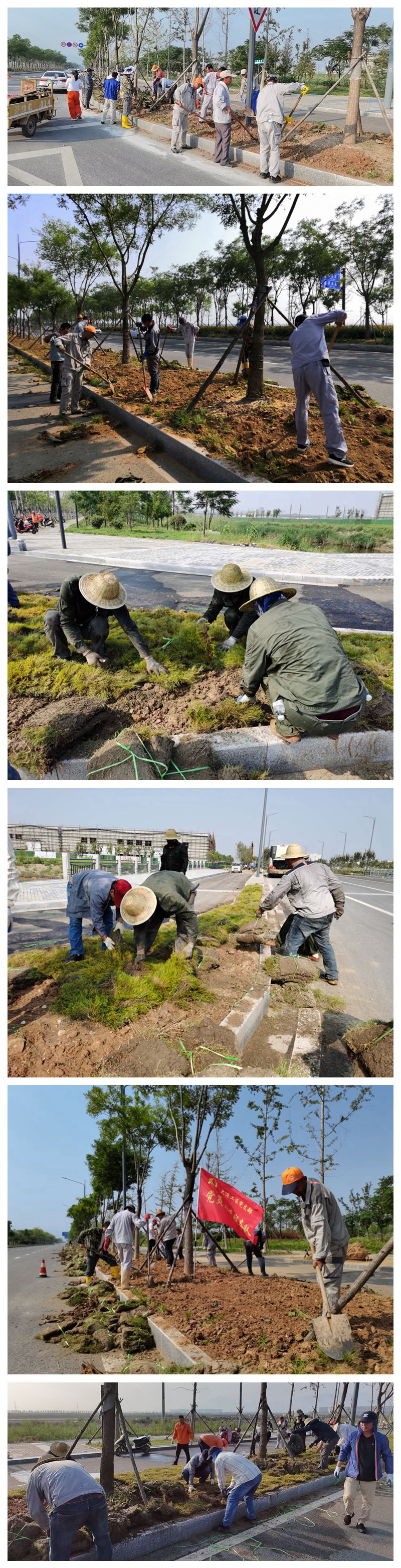 35度的高溫,6000平方米草坪鋪設任務,一個工作日的工程時限,6點集合,7點施工,來自翔立分公司、大浦工區(qū)、海州灣公司的30名突擊隊員······一一普通的數字背后是臺北“鐵軍”臨危受命,面對“艱難險阻”施工任務,一往無前,偏向虎山行的英雄氣概和恪守初心、不負使命的擔當作為。