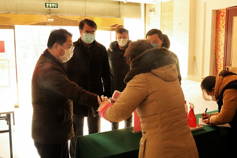 在金臺大酒店體溫檢測點,戴鴻鳴一行主動配合工作人員進行體溫檢測登記,現(xiàn)場查看了公司防疫設(shè)施設(shè)置、辦公場所消毒、值守人員配備等方面情況。在聽取了防疫工作情況和復(fù)工措施安排的匯報后,戴鴻鳴對公司積極貫徹集團防疫要求、嚴格落實疫情防控責(zé)任給予了充分肯定,并要求加強防控力度,做到三個到位。一要繼續(xù)把防控責(zé)任落實到位,將防疫工作作為當前首要任務(wù),守土擔(dān)責(zé)、守土盡責(zé);二要繼續(xù)把防控措施實施到位,保障職工工作環(huán)境、生活環(huán)境安全有序;三要繼續(xù)把復(fù)工措施細化安排到位,統(tǒng)籌做好宣傳引導(dǎo)、人員調(diào)配、業(yè)務(wù)開展等各方面工作,確保兩手抓兩不誤。
