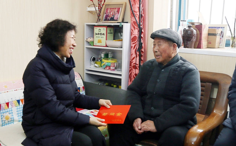 1月3日上午,省總工會(huì)黨組書記、副主席朱勁松在市人大副主任、市總工會(huì)主席王家全,市總工會(huì)黨組書記、副主席丁維杰陪同下,來我公司走訪慰問勞模王壽明同志,親手送上慰問金及慰問品,并為他帶來了新年的祝福。集團(tuán)公司董事長楊龍、工會(huì)主席劉承志陪同走訪。