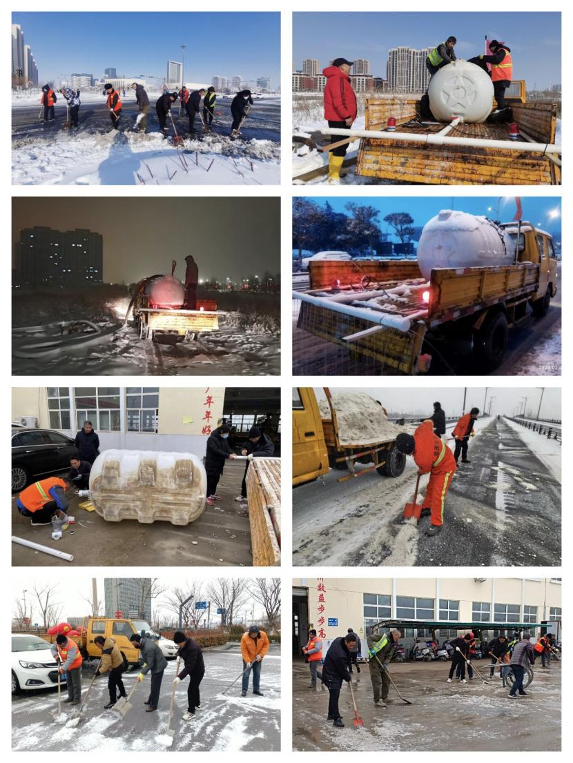 ? ? 日前,一場罕見的暴雪突襲港城,給新春送來了銀裝素裹,也為市民出行和生產(chǎn)生活帶來了不便。當(dāng)?shù)谝粓鲅┙蹬R開發(fā)區(qū)之后,翔立分公司的黨員職工積極響應(yīng)投資公司黨委的號(hào)召,積極投身于掃雪除冰一線。他們來到市開發(fā)區(qū)創(chuàng)智綠園和兄弟單位的同事們一道揮起鐵銑一銑又一銑的清除公園內(nèi)的積雪,大家伙忙活了兩個(gè)多小時(shí),終于清除了公園內(nèi)主干道上的冰雪,剛剛從安裝燈籠工程結(jié)束后還沒來得及及時(shí)休息的翔立鐵軍戰(zhàn)士們臉上露出了喜悅的笑容。