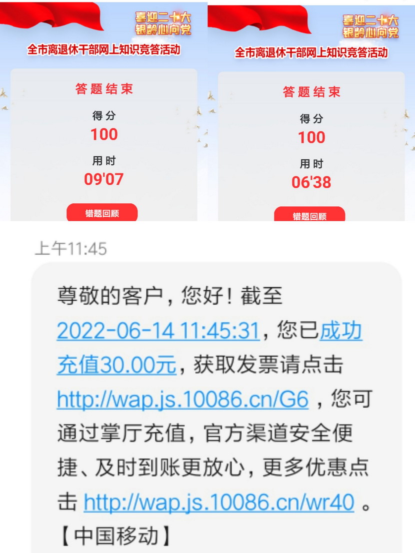 猴嘴辦事處對此次答題活動高度重視,動員猴嘴辦事處人員積極參與答題活動,并引導(dǎo)鼓勵離休老干部積極參加答題活動。經(jīng)過七天的連續(xù)網(wǎng)上奮戰(zhàn)答題,獲獎評選結(jié)果于6月13日揭曉,猴嘴辦事處張克娟同志喜進第一周獲獎人員名單,并且已收到了30元的話費充值獎勵。獲獎本人表示,將把此次競答獎勵轉(zhuǎn)化為學(xué)習(xí)的再生動力,再接再厲,以學(xué)促行,推動服務(wù)能力再提升。
