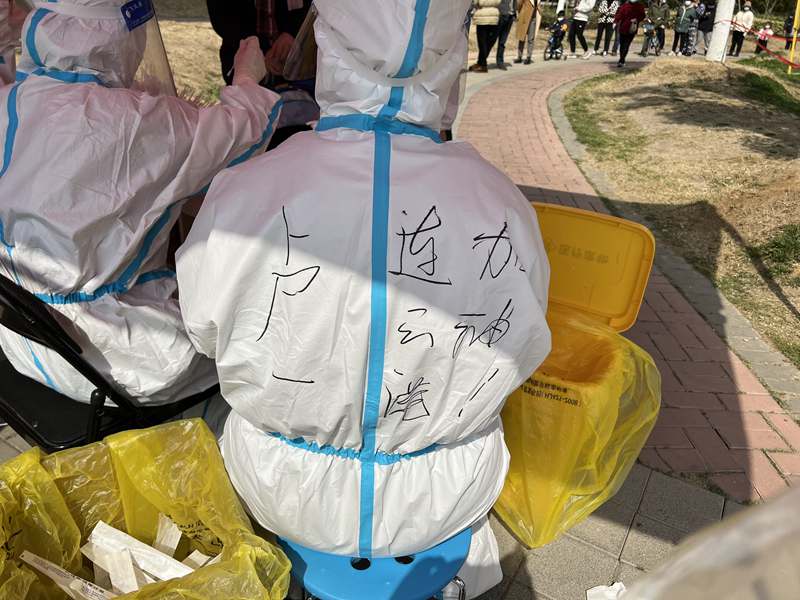 16:00,檢測進(jìn)入尾聲,忙里偷閑和大家聊會天,身邊的“大白”來自各行各業(yè),疫情防控戰(zhàn)打響,在這危難時刻,我們一同挺身而出,臨危受命,“逆行”沖往防疫第一線。大家聽從指揮、主動擔(dān)當(dāng)?shù)木唧w行動,充分體現(xiàn)了年輕黨員能打硬仗、敢打硬仗的優(yōu)良品格!