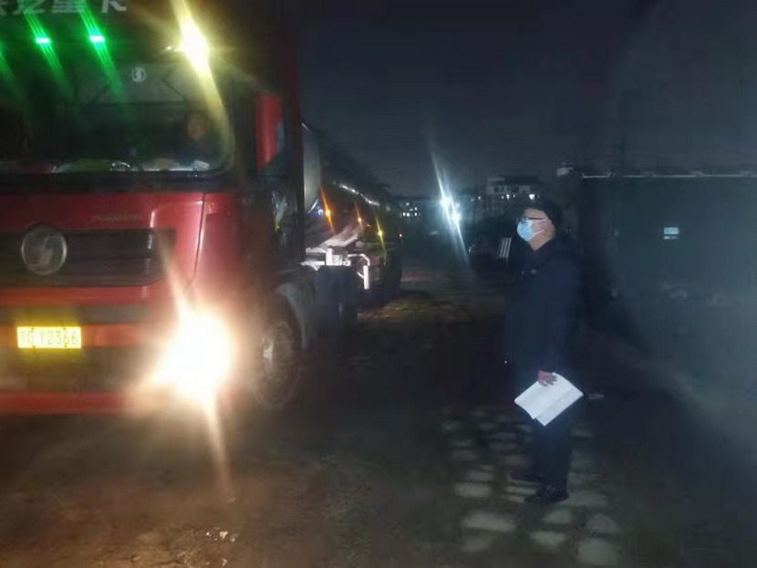 在登記信息的過(guò)程中,公司紀(jì)檢專員孫健細(xì)心的發(fā)現(xiàn)駕駛?cè)藛T的不對(duì)勁,“師傅,您看起來(lái)很疲憊,是身體不舒服嗎?”“小伙子觀察真是細(xì)致,我只是太餓了,閉環(huán)管理規(guī)定駕駛員不準(zhǔn)離車,所以我從鹽城出來(lái)4個(gè)多小時(shí)還沒(méi)有吃晚飯?!薄皫煾?,您稍等一下,我去給您買份快餐,再給您燒壺?zé)崴?!”?dāng)駕駛員吃完快餐,鈣液車也裝貨結(jié)束,此時(shí)已是晚上9點(diǎn)40分,按照“方案”規(guī)定,“大白”程輝對(duì)車輛進(jìn)行離場(chǎng)消殺,并拍攝相應(yīng)消殺照片,上傳系統(tǒng)。