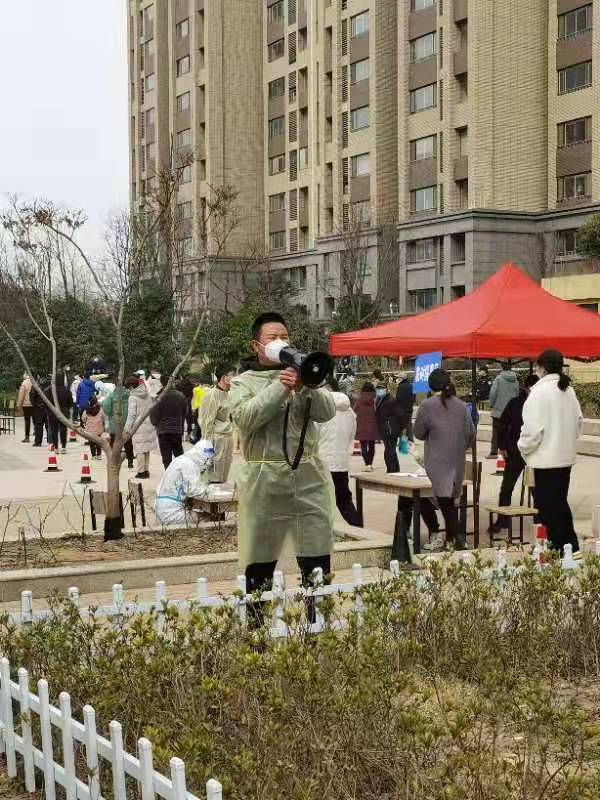 疫情爆發(fā)初始,許邱白就加入社區(qū)疫情防控志愿者的隊(duì)伍,服從志愿服務(wù)工作統(tǒng)一調(diào)度,協(xié)助醫(yī)護(hù)人員做好公共場所秩序維持,積極引導(dǎo)群眾有序進(jìn)行核酸檢測。在現(xiàn)場,他一邊維持秩序,一邊提醒居民們:“請大家佩戴好口罩、排好隊(duì),保持一米間隔,準(zhǔn)備好身份證,出示蘇康碼”。他不怕風(fēng)險,用實(shí)際行動踐行了“奉獻(xiàn)、友愛、互助、進(jìn)步”的志愿者精神。