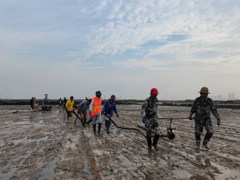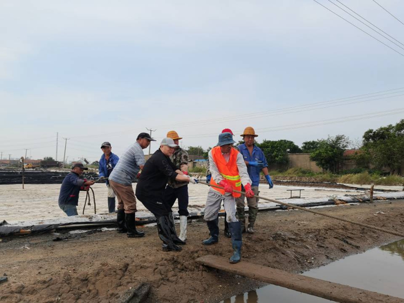 秋鹽開扒以來(lái),海州灣公司上下所有干群,主動(dòng)放棄節(jié)假日,晝夜奮戰(zhàn)在鹽池里。人工扒鹽三班倒,做到人停機(jī)不停;跟班人員24小時(shí)無(wú)縫銜接,確保時(shí)刻在扒鹽現(xiàn)場(chǎng)做好安全監(jiān)管工作。目前,隨著堿廠關(guān)停的步伐加快,原鹽搶收工作進(jìn)入到了決戰(zhàn)階段,在公司黨委的大力支持下,兄弟單位及機(jī)關(guān)各職能部門的火速馳援下,海州灣公司迅速啟動(dòng)第二臺(tái)機(jī)械扒鹽管道,與人工扒鹽同步進(jìn)行。公司領(lǐng)導(dǎo)與廣大職工想在一起、干在一起,上下齊心、爭(zhēng)分奪秒,擼起袖子、甩開膀子,在鹽池間盡情地?fù)]灑著汗水,確保勞動(dòng)成果顆粒歸倉(cāng),誓奪原鹽收官戰(zhàn)的勝利。