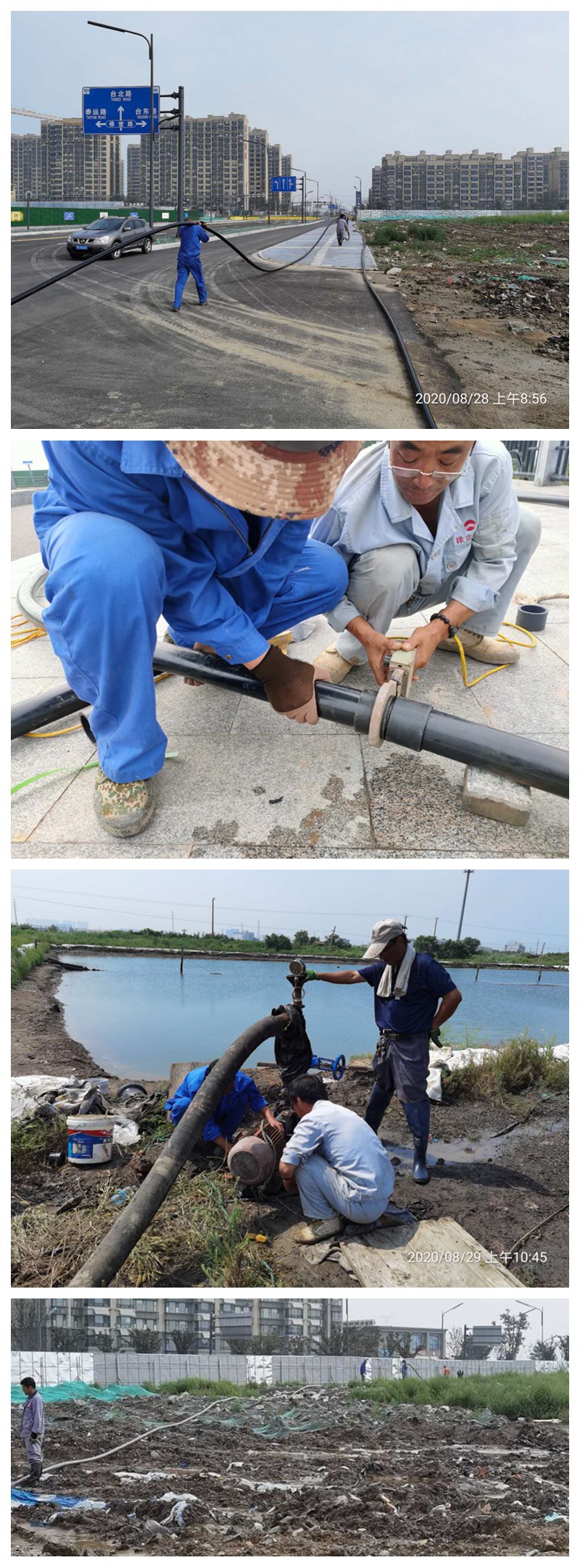 得此建議,翔立分公司立即組織動員,研究可行方案,從大浦工區(qū)借來扒鹽管道200米對接原黃化制鈣公司的鈣液輸送管道(全程穿越),架設(shè)臨時泵開始往回調(diào)鹵。但“天不遂人愿”,翔立人的一腔熱情卻被年久失修的報廢管道的損壞“化作了烏有”!頂管穿越管道壞在金橋路恒大御風(fēng)小區(qū)路邊,毫不氣餒的翔立人經(jīng)過三天的搶修,最終因損壞的管道太深(接近5米深)以及損壞程度嚴重而無法修復(fù)。