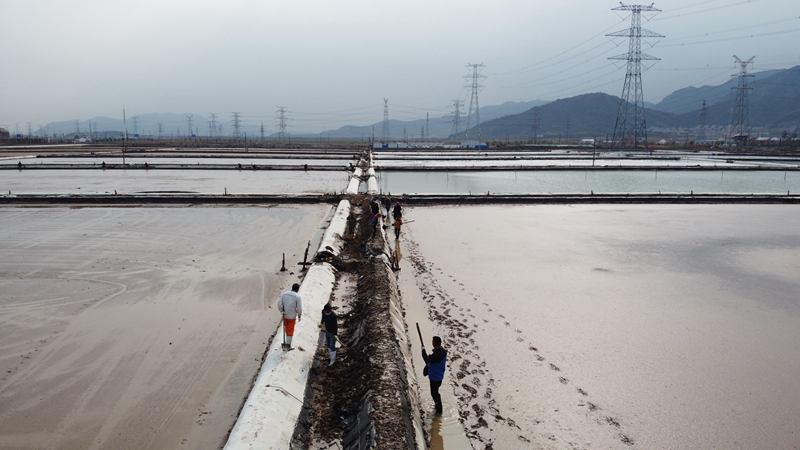 此時(shí)正是春曬制鹽的“黃金期”,海州灣公司獲知情況后,主動帶領(lǐng)全體員工組成“突擊隊(duì)”為兄弟單位“減負(fù)”,在大家共同努力下長約1200米的池堰一上午修整完畢,為下一步的池內(nèi)壓實(shí)及早日灌池贏得了寶貴的時(shí)間。