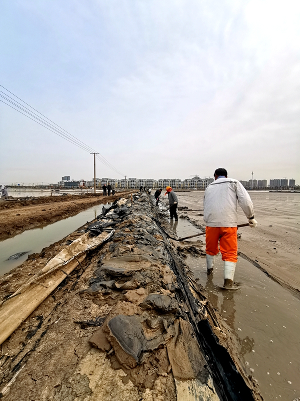 簡單交流后得知,東灘4組要趕在月底之前,將原來用作復曬的格塊重新改為結晶池,搶抓旺季增加產量,而東灘人員少,工作量大,僅憑現有的10余名職工,等改造完了灘地,可能就已進入了雨季,無奈之下請海州灣公司伸出援手。
