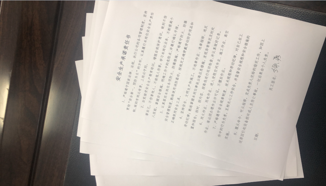 會(huì)后,逐步將安全承諾書和安全知識(shí)答卷發(fā)放至每個(gè)班組、灘頭,共計(jì)28份。