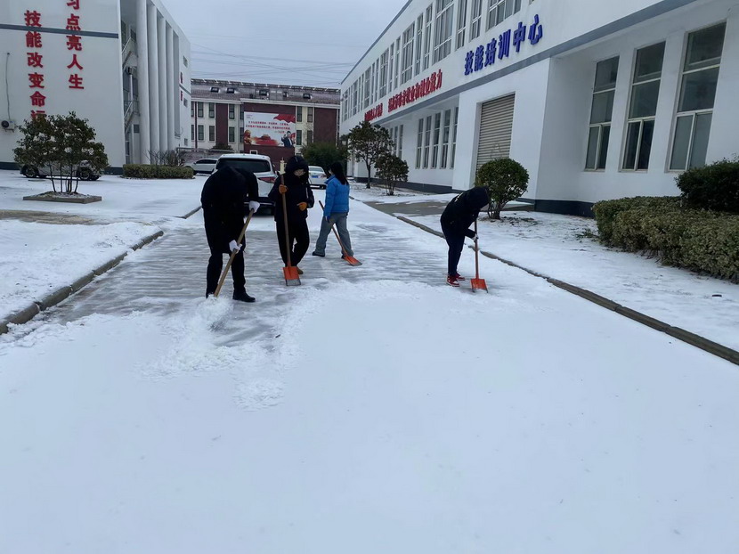 ? ? 男同事拿起鐵锨,女同事則緊隨其后,不甘示弱。大家熱情高漲,鏟雪、推雪、掃雪,干得熱火朝天。鐵鍬與地面的摩擦聲、掃帚的沙沙聲交織成一曲歡快的掃雪歌。在這寒冬之中,他們用汗水和熱情書(shū)寫(xiě)著責(zé)任與擔(dān)當(dāng)。經(jīng)過(guò)大家共同努力,道路很快就暢通了,雪也被清除得干干凈凈。