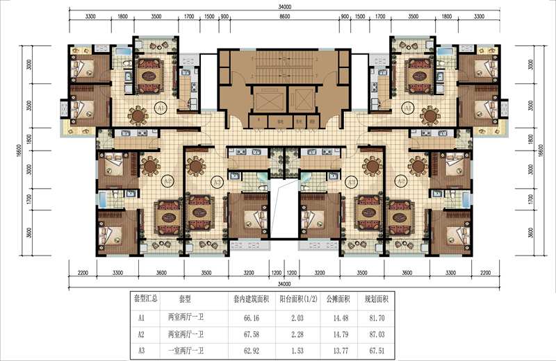項(xiàng)目規(guī)劃有五種戶型(A1、A2、A3、B1、B2),房源共計(jì)548套。其中:A1、A2、A3戶型分布在A1#、A6#樓,共240套;B1、B2戶型分布在A2#、A3#、A4#、A5#樓,共308套。