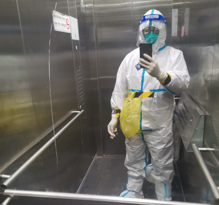 ? ? 14日? 雷聲驟響,大雨突降,集合時間待定,安心的吃了點早飯,依舊不敢吃多。9點開始,第九輪。我出狀況了,剛采一會口罩松了,眼鏡、面屏上全是霧氣,什么也看不見,沒法操作。為了不影響進度我被換下,原定入戶采集的志愿者頂上。防護服脫了就浪費了,我就等入戶醫(yī)生到達(dá),去上門采集。掃樓和定點完全不一樣,悶、熱,大白服都濕透了。13.40結(jié)束,全身“噴殺”消毒,脫裝備,再噴消。飯后沒安排我工作,做了核酸后在小區(qū)里坐了幾個小時,心里始終不能平靜,害怕,不安占據(jù)了我的內(nèi)心,即使做了防護措施但是還是有很大風(fēng)險,我也有家人,所以我害怕,真的害怕!“沒事的”“沒事”最后還是妻子開解了我。