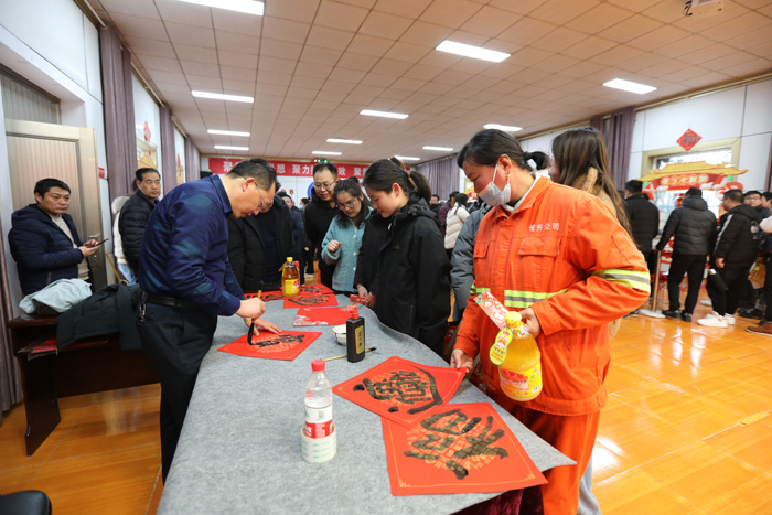 現(xiàn)場(chǎng)開(kāi)展的寫(xiě)“?!彼汀案!被顒?dòng),與項(xiàng)目比賽同頻共振,在喜慶的音樂(lè)聲中把一張張紙紅墨香的“?!弊炙蛡€(gè)每一名職工,為營(yíng)造喜樂(lè)福滿的“新春賽場(chǎng)”增色添彩,增強(qiáng)職工的成就感和幸福感。(徐宣 徐工)