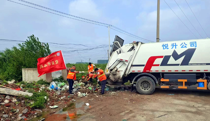? ? ? ?8月22日上午,室外熱浪滾滾,橙色工作服在強(qiáng)烈陽光照耀下顯得格外引人注目。環(huán)衛(wèi)分公司黨員突擊隊(duì)第一時(shí)間加入到環(huán)境衛(wèi)生“治理”中。活動(dòng)中,隊(duì)員們沖鋒在前,不怕臟、不怕累,及時(shí)對(duì)轄區(qū)各類生活垃圾進(jìn)行清理。在轉(zhuǎn)運(yùn)各類垃圾過程中,該分公司管理人員身先士卒,積極與大家奮戰(zhàn)在一起,經(jīng)過4個(gè)小時(shí)的連續(xù)作戰(zhàn),共清理垃圾點(diǎn)4處,清運(yùn)垃圾約7余噸。