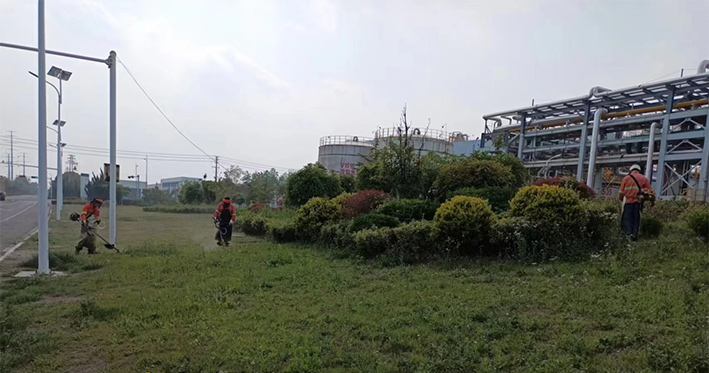 板橋工業(yè)園區(qū)祥和路、云港路、瑞和路等路段,隨處都可見到綠化工人忙碌的身影,他們不畏辛苦,搶時間、抓進度,對綠籬、綠化苗木進行修剪造型。園區(qū)路邊,機器轟鳴,除草工作有條不紊。綠化工人們頭戴防護帽,架著割草機,動作嫻熟,割草效率極高。三人一排、兩人一對,齊頭并進,戰(zhàn)線推進過的地方涇渭分明,留下一片整齊的坡面,賞析悅目。經過多日持續(xù)奮戰(zhàn),已經完成綠地雜草清理15萬平方米,綠籬修剪3萬平方米任務。為高標準完成二季度綠化管養(yǎng)目標奠定基礎。(劉永)