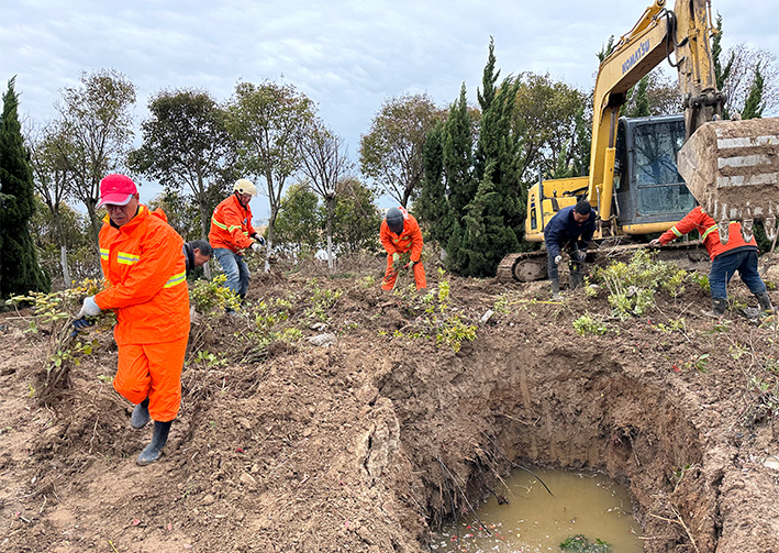 初晨微風(fēng)習(xí)習(xí)、陽(yáng)光輕灑。綠化班組在班長(zhǎng)楊茹明帶領(lǐng)下早早的就到達(dá)了作業(yè)地帶,挖掘機(jī)將石楠和黃楊等一些苗木進(jìn)行松土挖起,放入三輪車中轉(zhuǎn)移至云港路空缺綠化路段,云港路上綠化工人你一撬我一栽,將轉(zhuǎn)移來(lái)的苗木進(jìn)行輕微修剪然后種植下去。