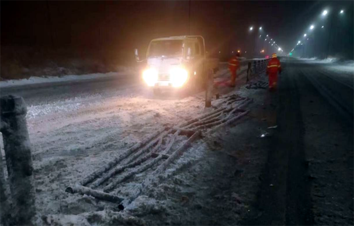 市政分公司根據(jù)公司安排,負責融雪劑裝卸工作,從2月3日下午到4日上午,市政分公司累計裝卸融雪劑已達150余噸。該分公司在做好保障融雪劑裝卸作業(yè)的同時,抽調(diào)4名精兵強將,處理因大雪導致的道路交通事故應急處置4起,應急處理道路護欄11節(jié),約38米,防止交通事故二次發(fā)生。在5日凌晨更是經(jīng)理盧正楊帶領(lǐng)10名黨員先鋒突擊隊,支援重點道路徐新路的融雪劑拋灑作業(yè),僅靠雙手揮著鐵锨,通宵奮戰(zhàn),迎難而上,高質(zhì)高效完成融雪劑拋灑作業(yè)路段。(李濤)