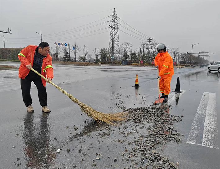 聚焦“兩個作用”、提升應急處理。支部堡壘與先鋒表率作用有力得以彰顯。該分公司黨員生產骨干張學軍、徐習東、陸永柱,巡現(xiàn)時發(fā)現(xiàn)轄區(qū)道路現(xiàn)場車輛拋灑石子,第一時間安全迅速奔赴清理路段,與同事齊心合力揮動手中大掃把,清掃石子近1000多米長,轉運清倒30余車,工作中爭先恐后場景成為雨中道路上最美感人畫面。(楊波)