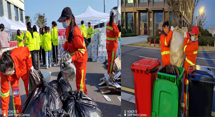 10月22日凌晨3時,保潔公司40余名保潔先鋒兵鋒六路安全序時趕赴賽事保障區(qū)域。道路現(xiàn)場,保潔衛(wèi)士無懼深秋徐圩海風(fēng)吹透身體,兩人一組,揮動手中掃把,徒手清掃各個活動區(qū)域積土1000多米長,撿拾海風(fēng)吹落各種垃圾100余包。比賽現(xiàn)場,保潔人員無視秋日暖陽照曬,及時有效清理運動員丟棄飲料瓶300余包,清理打包各種餐盒2000多個,轉(zhuǎn)運各種垃圾200多車。大家齊心合力的工作精神與賽事活動融入一體。