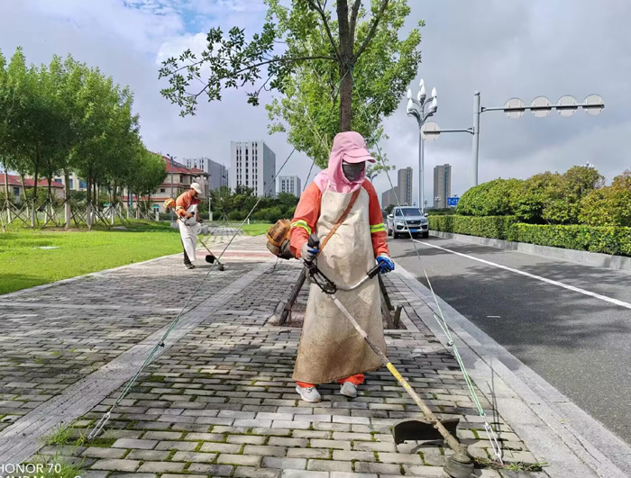 ????? 黑色柏油馬路上,熱浪滾滾,橙色工作服在強烈陽光照耀下顯得格外引人注目。女子班組保潔人員在班長龔飛帶領下,背著30余斤重的割草機,來回擺動手中機械,忘我工作達7個多小時,“收割”云河南路生活區(qū)周邊雜草20多處;人工清掃裝運施工車輛拋灑石子、泥土30余車,擦洗站臺座椅40多個,清掏果皮箱余200余只。